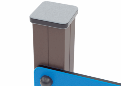 - Aluminio: Perfil extrusionado de 90×90 mm en aleación 6060-T6 con acabado anodizado plata. Resistente a la intemperie, ligero y de bajo mantenimiento.
